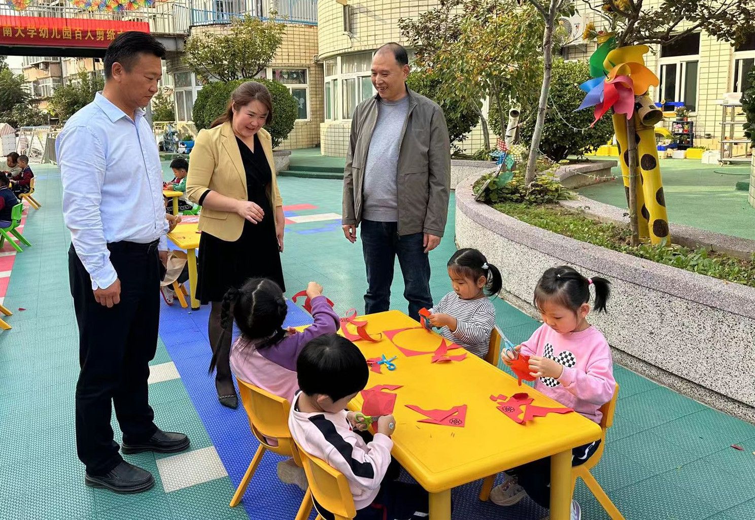 10月16日,sunbet申搏官方网站幼儿园举办百人剪纸大赛。济南非物质文化遗产保护协会副会长秦绪荣、济南剪纸协会副会长张洪、秘书长张春晓、sunbet申搏官方网站基础教育中心党委书记、主任张峰及sunbet申搏官方网站幼儿园相关负责人、参赛家长代表等100余人参加此次活动。