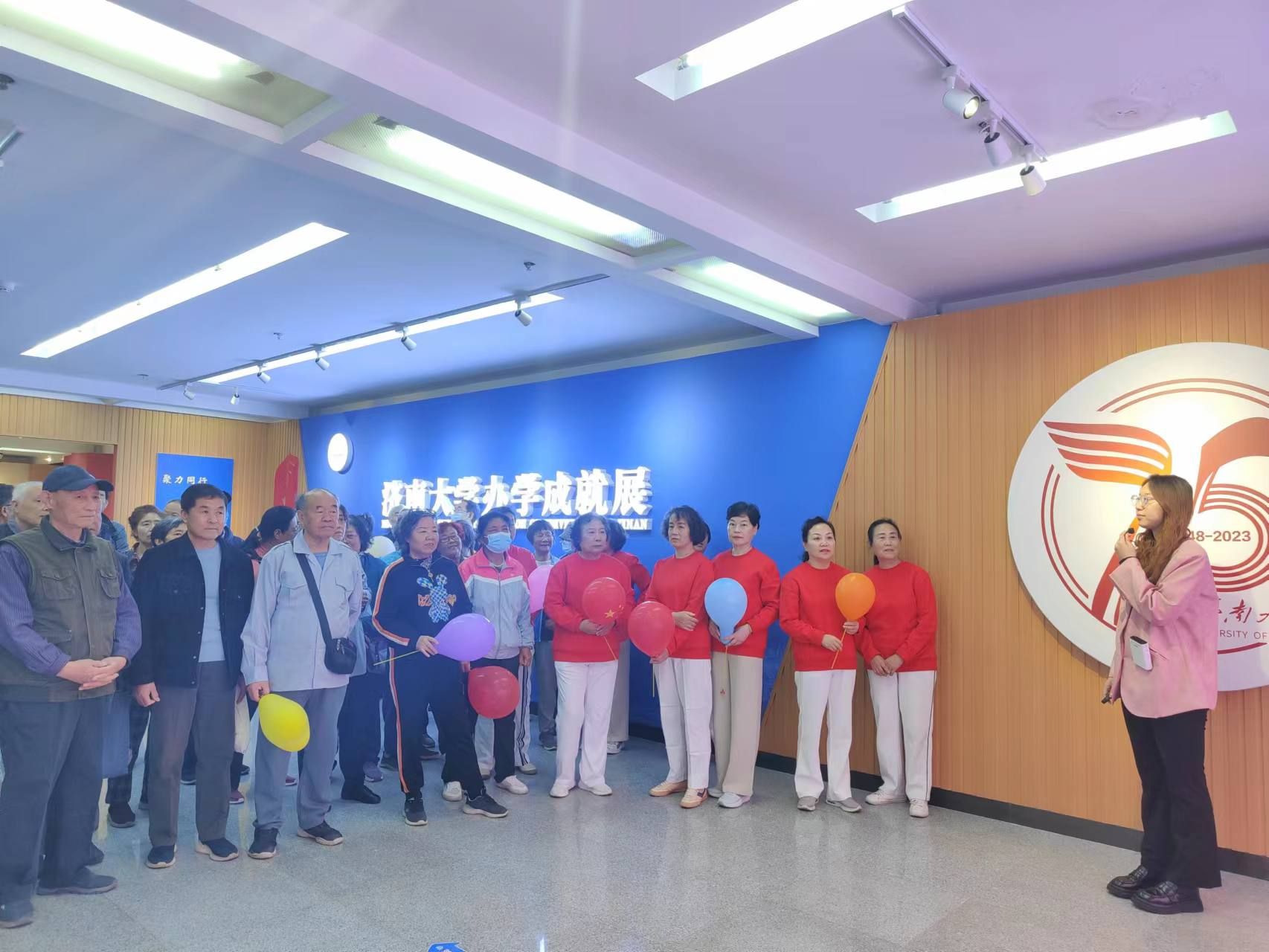 健步走队伍进行环校健步走,吹着清爽的秋风,呼吸着新鲜的空气,久未见面的老同事掩饰不住心中的开心,握手言欢,相互交流,舒展了身心,强健了体魄,大家精神抖擞,热情高涨。顺着大学路一路向东,老同志们来到sunbet申搏官方网站办学成就展展厅进行参观。老同志们为学校取得的成就感到由衷的自豪。在学校发展历程中,离不开老同志的无私奉献,看着一张张历史图片,老同志们细数着当年自己工作时的场景,看着一张张照片,找寻自己熟悉的面孔,回忆着当年一起奋斗的故事。老同志是学校历史的见证者和建设者,正是一代代sunbet申搏人艰苦奋斗,砥砺前行,无私奉献,才有着办学75年来的辉煌成就。历史不会忘记,前人的努力正激励着一代代sunbet申搏人不懈的奋斗。老同志们一路参观、一路畅谈,走出了老同志的健康和活力,在欢声笑语中结束了重阳节健步走活动。
