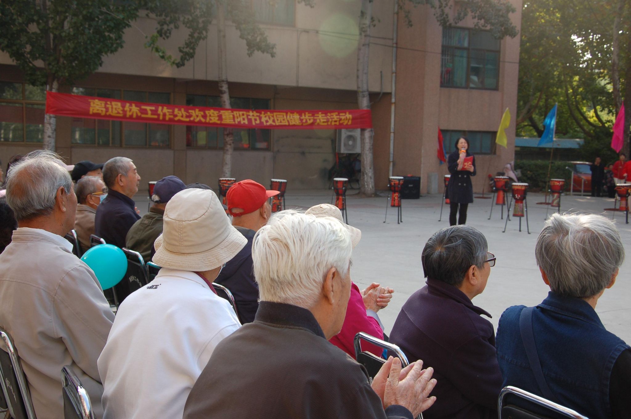 上午九点,主校区离退休工作处办公楼下小操场彩旗飘飘,笑语欢歌。离退休工作处处长高卫红致辞,尊老敬老是我们中华民族的传统美德,老同志把毕生精力都献给了党和人民的事业。广大离退休老师虽然离开了工作岗位,仍然关心着党和国家大事,关心着sunbet申搏官方网站的发展,关心着年轻一代的健康成长,不遗余力,奉献余热,发挥着极其重要的作用。至此节日之际,向所有离退休老师致以节日的问候和衷心的祝福。