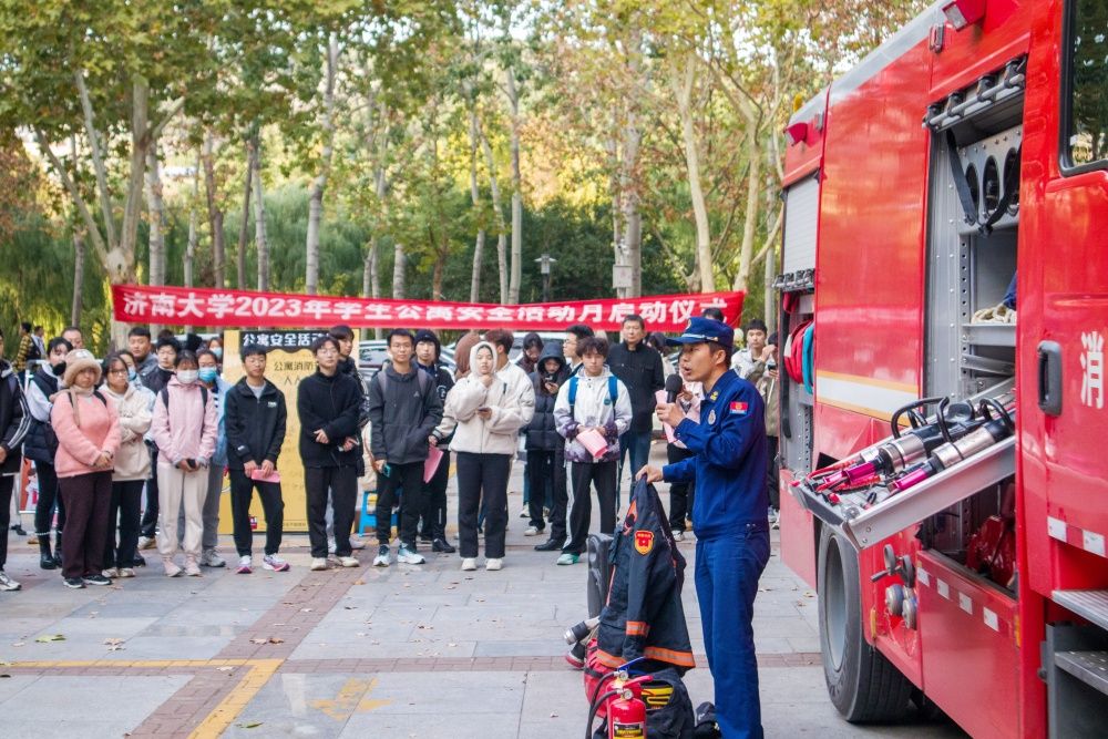 为进一步加强学生公寓安全管理,切实保障广大学生的人身和财产安全。11月9日下午,sunbet申搏官方网站2023年学生公寓“安全活动月”启动仪式在主校区八食堂东广场举行。市中区白马山消防救援站政治指导员崔光宇、班长苏文琦,市中分局七贤派出所驻我校主校区民警张明明,党委学生工作部(处)、团委、党委保卫部、各学院分管学生工作副书记、学办主任,辅导员以及学生代表参加了活动。启动仪式由党委保卫部副部长陈营明主持。