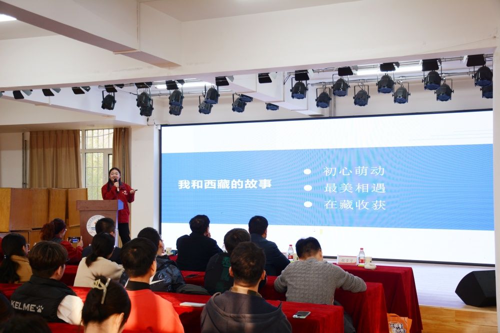 为做好西部计划的组织动员和招募选拔工作,更好地服务2024届毕业生就业,11月22日下午,学校举办“到西部奋斗 让青春出彩”大学生志愿服务西部计划西藏专项宣讲会。本次活动由学校团委副书记梁明潜主持,共青团西藏自治区委权益志工部部长刘传磊、山东省志愿者行动指导中心武学江,各学院团委负责同志、毕业生辅导员和应届毕业生代表百余人参加活动。