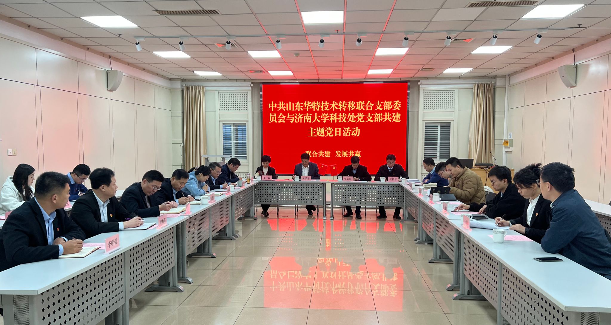 为深入学习贯彻党的二十大精神,以党支部联合建设促进党建共建、资源共享、人才共育、发展共赢,11月27日,sunbet申搏官方网站科技处党支部与山东华特技术转移联合党支部开展了“联合共建 发展共赢”主题党日暨支部共建签约活动。科技处党支部副书记王传平主持会议。