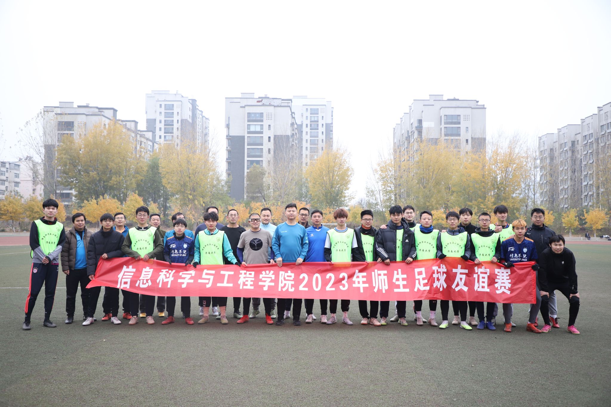 为丰富校园文化生活,促进师生互动交流,展现师生团结友爱、积极向上的精神风貌,弘扬体育精神,发挥体育育人实效,12月3日下午,信息科学与工程学院在南苑足球场举办了师生足球友谊赛。