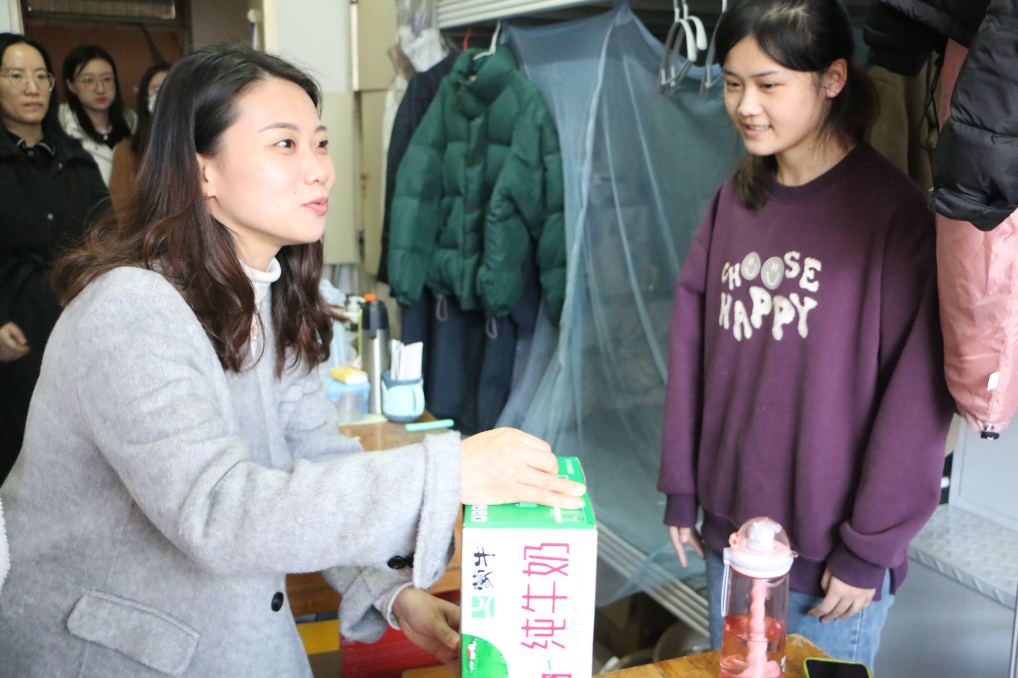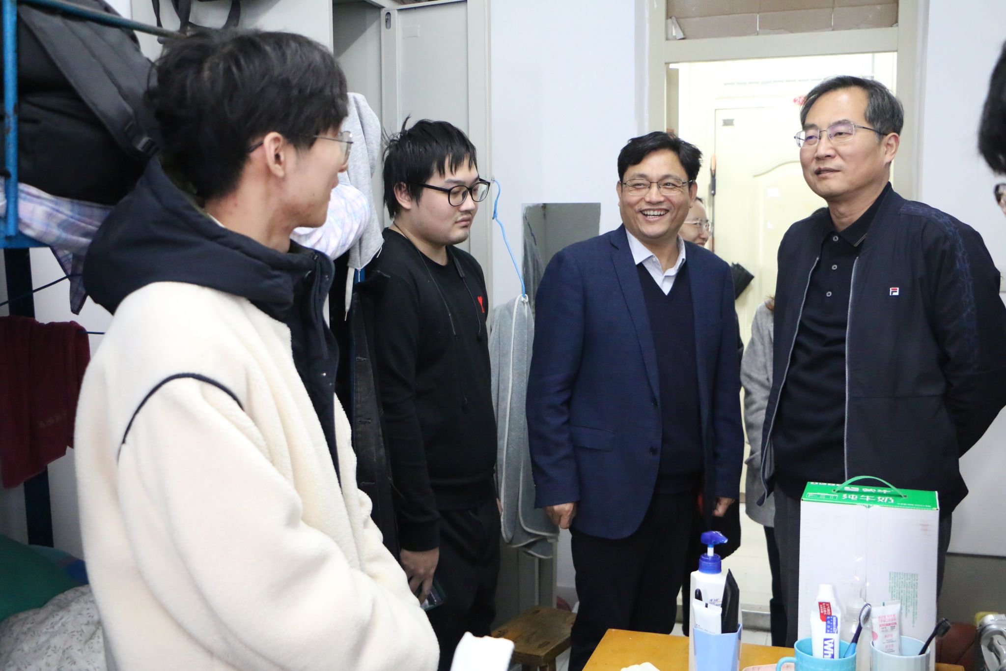 为帮助考研学子缓解备考压力,鼓舞考研士气,坚定考研信心,12月4日中午,化学化工学院开展2024届考研慰问活动。学院党委书记贺铭,院长陈国柱,副书记、副院长白雪飞及全体辅导员深入学生宿舍进行慰问,为考研学子发放慰问品。