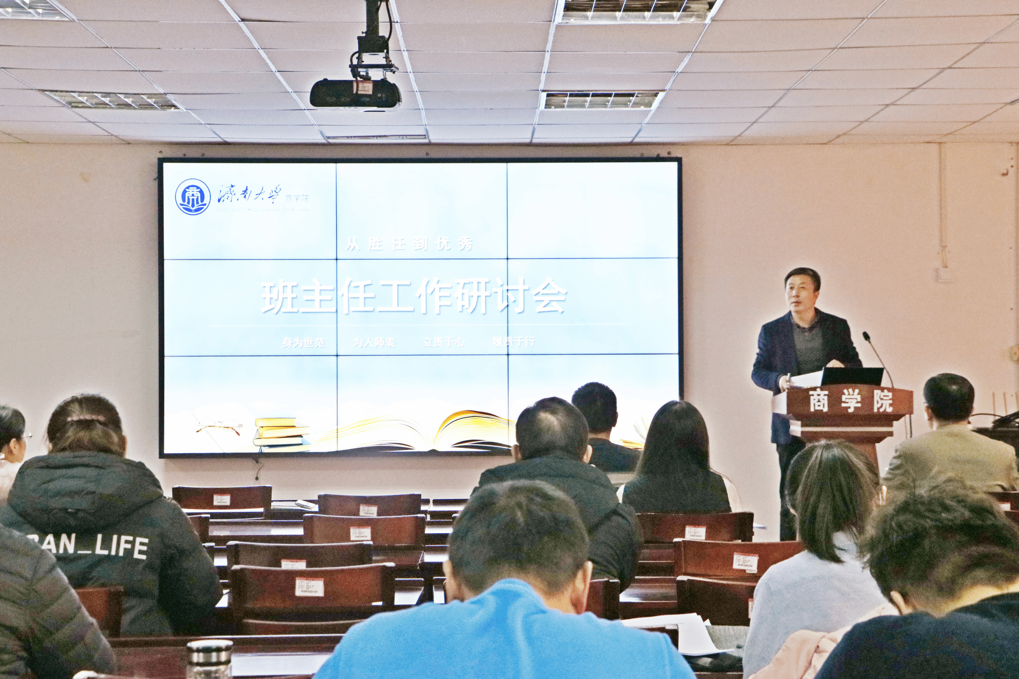 为落实好高校立德树人根本任务,充分发挥班主任的重要作用,进一步加强学风建设和班级管理,12月12日下午,商学院在经管楼615会议室召开班主任工作研讨会,学院领导班子成员、各系主任、全体班主任和辅导员参加会议。会议由学院党委副书记、副院长袁海占主持。