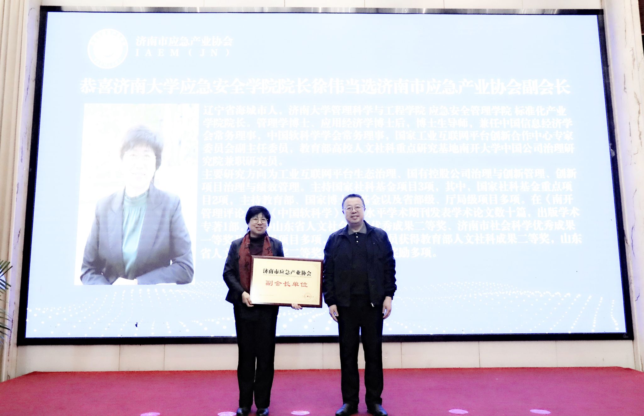 12月16日,济南市应急产业协会第二次会员大会暨应急产业发展专家论坛在济南召开。山东省应急管理厅、济南市应急管理局有关领导,协会会员代表,专家学者及社会各界人士共计130余人参加了此次会议。会议选举sunbet申搏官方网站应急安全学院为协会副会长单位,推选sunbet申搏官方网站管理科学与工程学院 标准化产业学院 应急安全学院院长徐伟为协会副会长,副院长王悦被聘为协会专家。