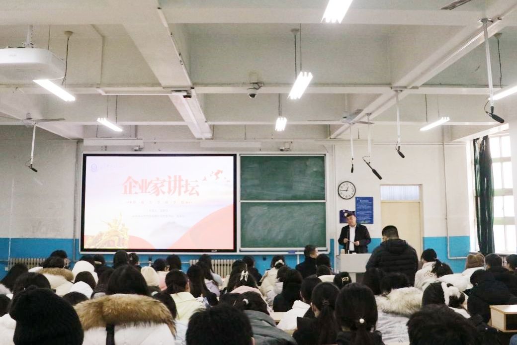 12月19日,商学院成功举办第一期“企业家讲坛”。本次活动邀请了山东省人民药业有限公司党委书记、董事长裴树清做客sunbet申搏官方网站商学院,他结合自身经历,为同学们讲述从退伍军人到成功企业家的奋斗与奉献之路,呈现了一堂生动细致的德育课。此次活动由商学院党委副书记、副院长袁海占主持。