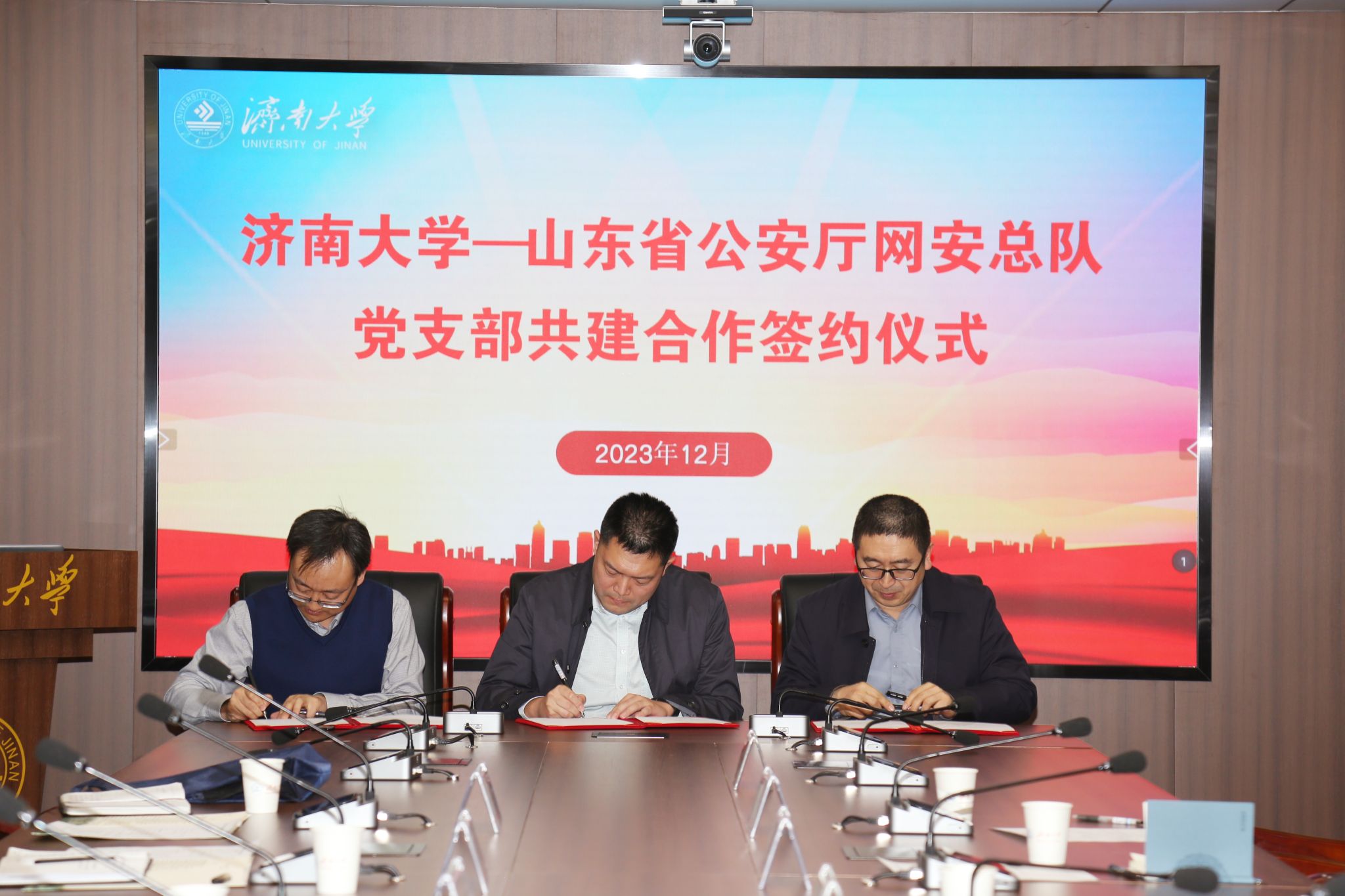 山东省公安厅网安总队党总支第二党支部、sunbet申搏官方网站机关党委信息管理处党支部、sunbet申搏官方网站生物科学与技术学院党委教工第二党支部共同签署了支部共建协议。