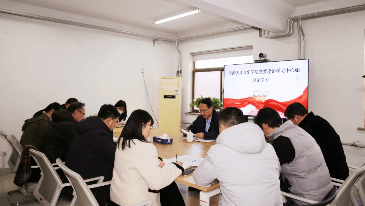 12月21日,音乐学院党委理论学习中心组在学院荣誉室开展了集体学习活动。会议由学院党委书记孙翔玲主持,学校党委常委、宣传部部长贾海宁列席指导,组织员、教工和学生党支部书记列席会议。