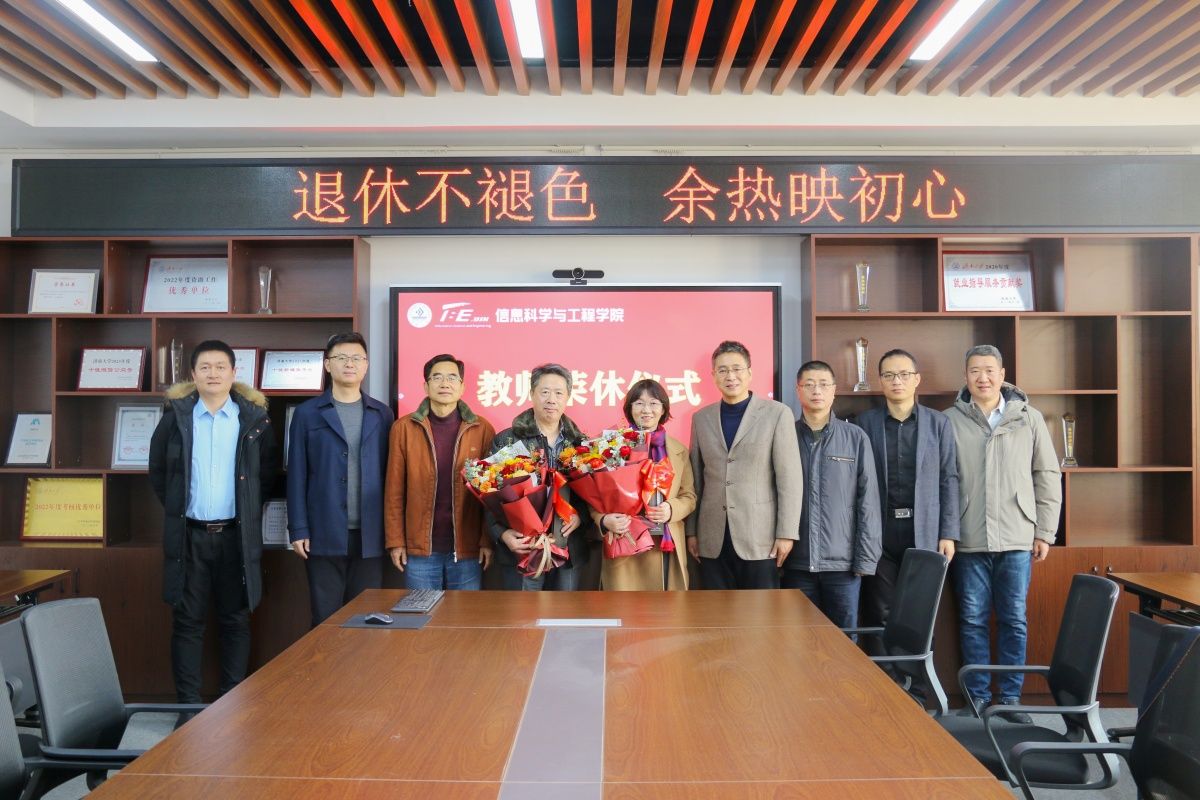 “一支粉笔,行云流水;四季耕耘,硕果累累”。1月14日上午,信息科学与工程学院在12教704会议室为董吉文、杨雪梅两位教师举办荣休仪式,学院班子成员、相关系部负责人、退休教师以及教师代表参加仪式,仪式由学院党委书记夏卫东主持。