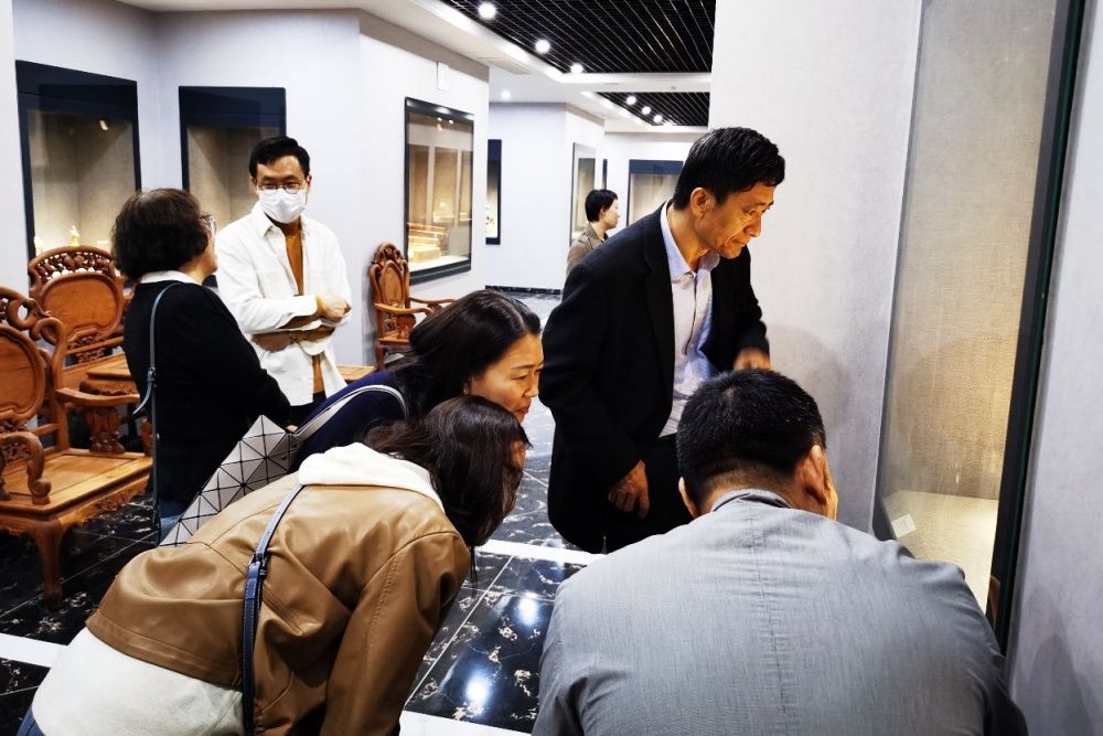 华翌贞藏博物馆是一家私人博物馆,始建于2010年,馆藏面积1200平方米,馆藏文物万件以上,致力于打造省内首家“学校博物馆”,通过“走出去 引进来”的方式把展览送进学校,送到孩子们身边。馆内陈列着丰富的文物展品,每一件都承载着深厚的历史底蕴和文化内涵。这些文物历经岁月沧桑,依旧闪耀着历史的光辉。同志们在馆长廖华南、运营总监韩娟的讲解与陪同下,依次参观了书画长廊、文房厅、瓷器厅、玉器厅、精品厅和杂项厅六个展示空间,不时驻足观看、交流心得。孟德洋表示,通过开放展览、学生研学、学术研究、文创产品等多元方式,深入挖掘文物价值,让它们在现代社会中焕发新的生机与活力,充分发挥“一个博物馆就是一所大学校”的作用。