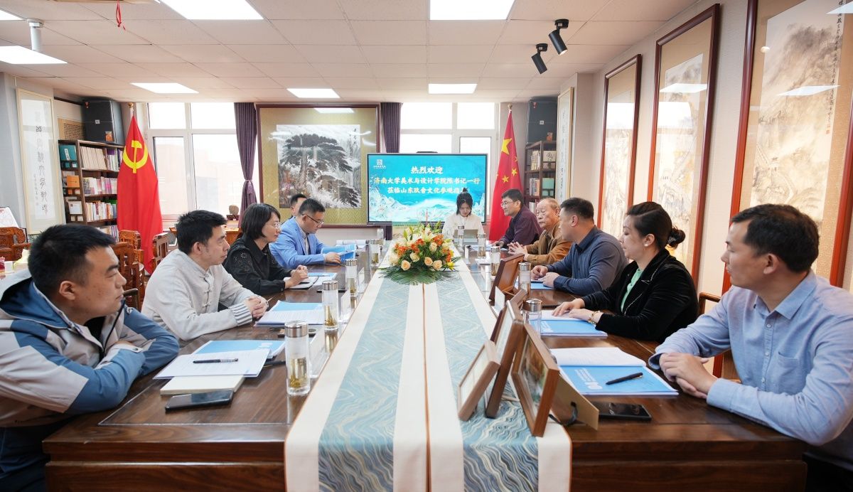 为坚决实施就业优先战略,深入拓展就业资源,4月11日,美术与设计学院党委书记陈春锋,党委副书记、副院长何贵亮,美术系主任陈炜,学生工作办公室主任王鹏飞,实训中心主任成海明一行5人到山东玖舍文化艺术传媒有限公司进行走访调研,拓展就业渠道,助力毕业生高质量就业。中国孔子书画院周艺,山东玖舍文化艺术传媒有限公司总经理贾南,副总经理陈虹、王帅俊等人进行了热情的接待。