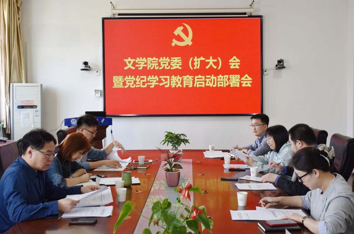 4月16日,文学院召开党委(扩大)会议暨党纪学习教育启动部署会。学院党委领导班子成员、各党支部书记参加了会议。会议由学院党委书记董海军主持。