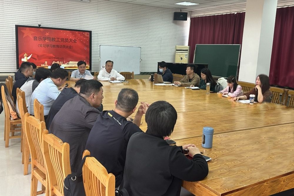 4月16日上午,音乐学院党委在阅览室召开党委(扩大)会议暨党纪学习教育工作启动部署会,传达学校党的建设工作领导小组会议精神及学校党委《关于开展党纪学习教育的工作方案》部署要求,制定音乐学院党委关于开展党纪学习教育工作计划。学院党委班子成员,教工党支部书记、学生党支部书记参加会议。会议由党委书记孙翔玲主持。