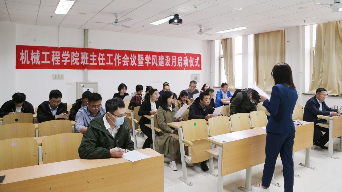 为进一步加强学院班主任及辅导员教师队伍建设,强化育人工作,4月23日下午,机械工程学院召开班主任工作会议暨学风建设月启动仪式。全体班主任及辅导员参加本次会议。