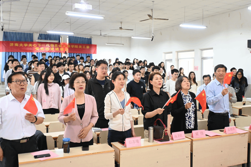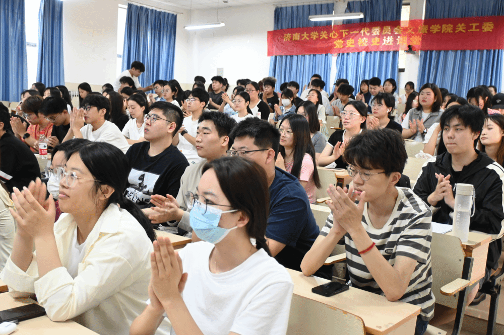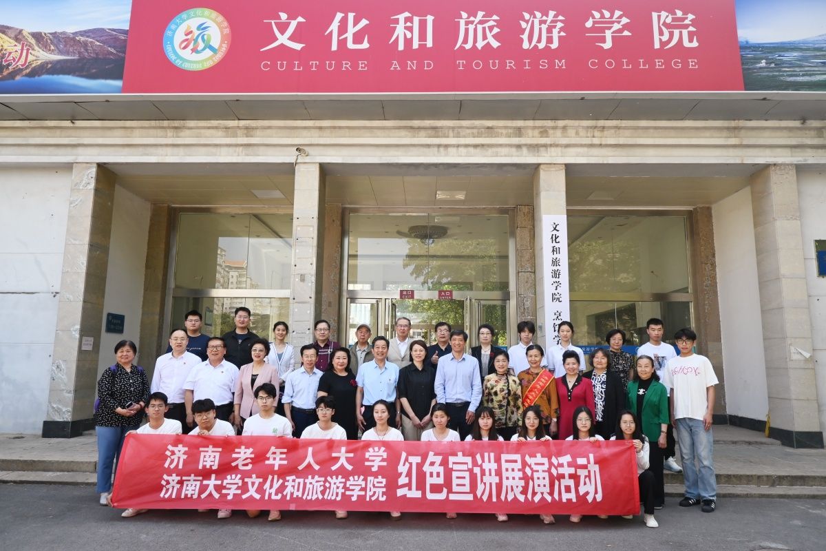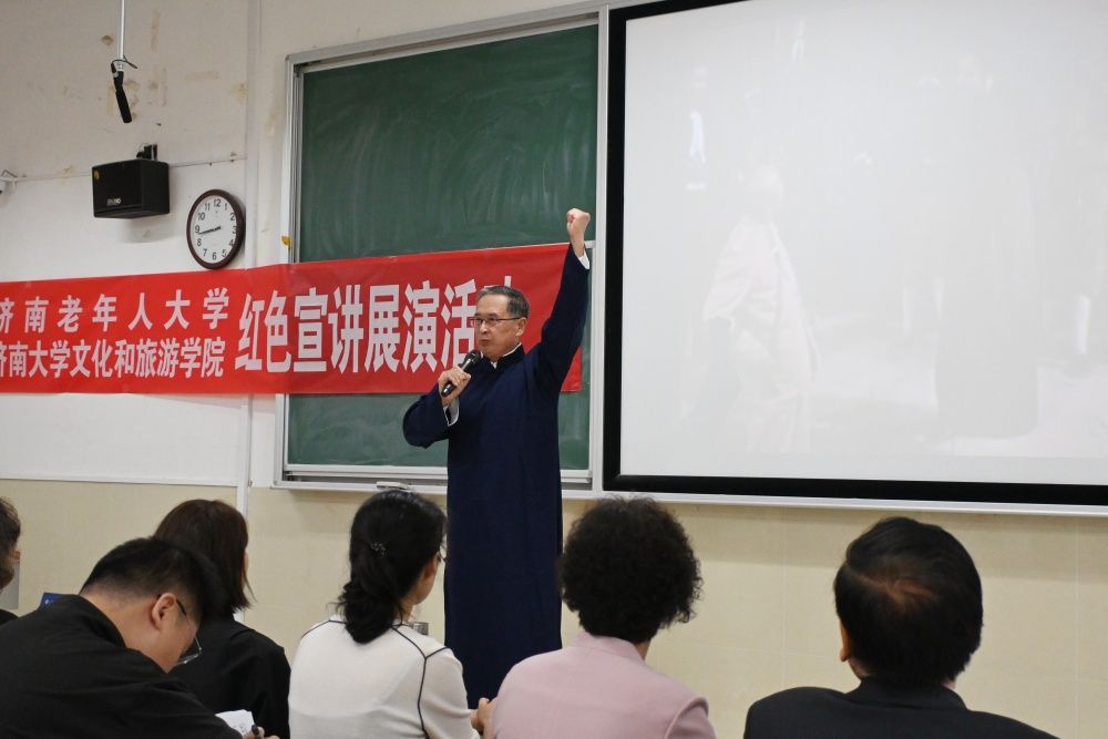 为进一步弘扬爱国主义精神,传承红色基因,加强党史学习教育,深化校际交流合作。4月27日,文化和旅游学院与济南老年人大学、sunbet申搏官方网站关心下一代工作委员会(以下简称关工委)联合开展了红色宣讲展演暨党史校史进课堂活动。济南老年人大学关工委副主任、志愿服务团团长张建军,sunbet申搏官方网站关工委副主任梁伟,sunbet申搏官方网站离退休工作处处长、关工委秘书长高卫红,sunbet申搏官方网站文化和旅游学院党委书记孟德洋,学院党委副书记、副院长信苏珊出席活动,济南老年人大学宣讲团、文旅学院全体学生党员、新一期积极分子、青马工程学员、教师代表共200余人参加活动。