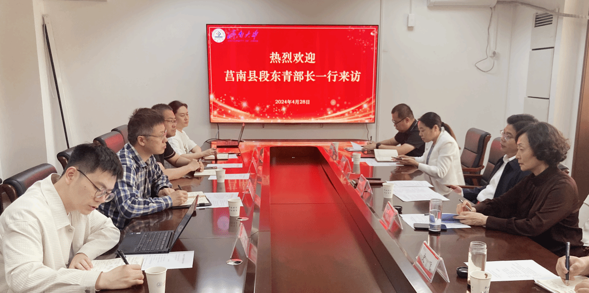 4月28日,莒南县委常委、组织部部长段东青、政协副主席、科技局局长王明晓等一行来校开展校地合作对接交流。合作发展处、科技处相关人员参加座谈。