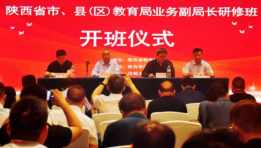 5月11日上午,由陕西省教育厅主办、sunbet申搏官方网站协办的国培计划、省培计划陕西省市、县(区)教育局业务副局长研修项目开班仪式在济南举行。陕西省中小学校长、幼儿园园长、培训中心主任杨令平、sunbet申搏官方网站基础教育中心党委书记、主任张峰及培训班学员等120余人参加开班仪式,陕西省教育厅教师培训项目负责人张科浦主持开班仪式。