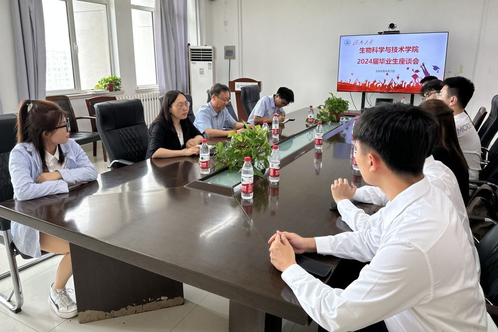为进一步了解毕业生思想动态,加强爱校荣校教育,做好毕业生离校前的服务保障工作,6月7日,生物科学与技术学院召开“情系生科 行远思恩”毕业生座谈交流活动。会上,毕业生代表积极发言,表达对学院和老师的感激之情,畅谈大学学习生活的收获与感悟,并为学校、学院的发展建设提出宝贵的意见建议。学院党委书记史国普对同学们顺利完成学业、开启人生新征程表示祝贺,并对同学们为学校更好发展建言献策表示感谢。他勉励毕业生,离校后要坚持学习,持续探索新知;勇于开拓创新,不断追求更高目标;心怀家国情怀,把“小我”融入“大我”,担当时代赋予的责任和使命。