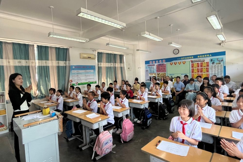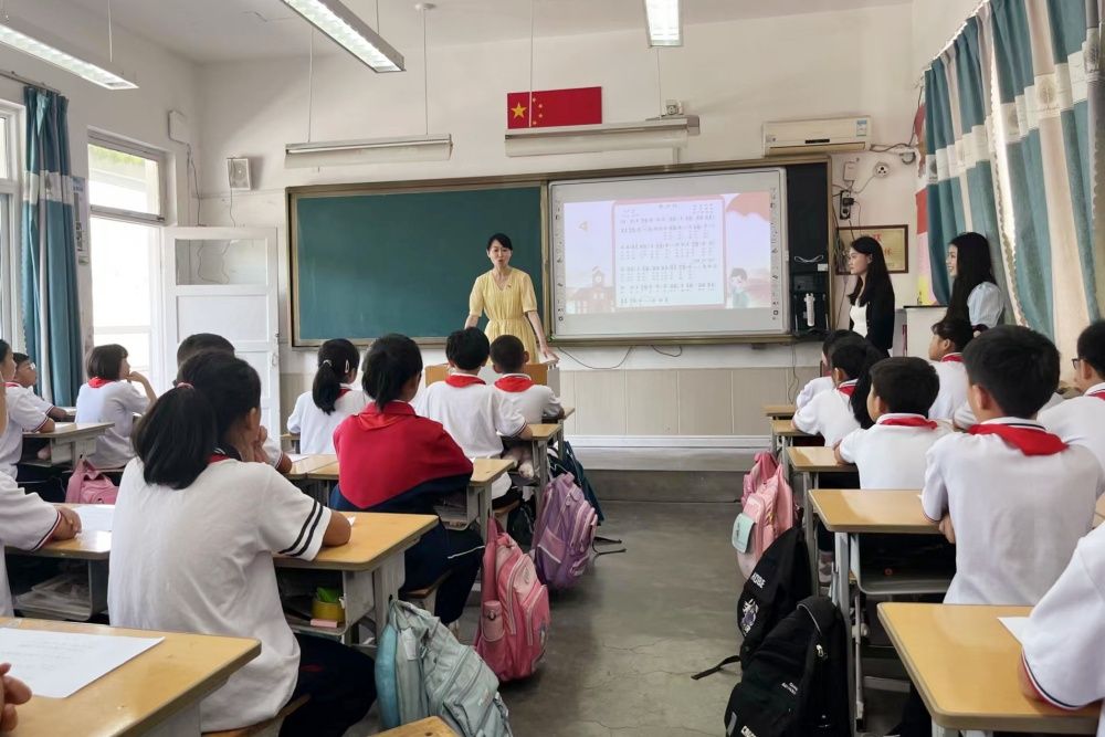 参加此次活动的同志首先来到柳埠闫家小学,向师生捐赠文体用品。学校音乐学院副教授杨阿红和音乐学院研究生赵佳美、蔡依檀共同为小学生上了一堂别开生面的音乐思政课,教唱红歌《东方红》,并与小学生进行互动交流,教育引导他们爱党爱国爱社会主义,立志成才报效祖国。