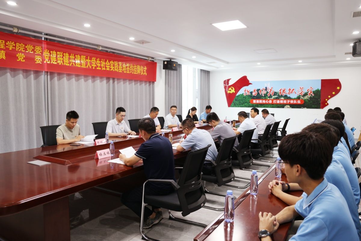 随后,夏卫东和孙宗宁签订《党建联建共建合作协议书》,王豪和孙浩签订《大学生社会实践基地协议》。夏卫东和李强强共同为“党建联建共建基地”揭牌,郝伟和孙浩共同为“大学生社会实践基地”揭牌。