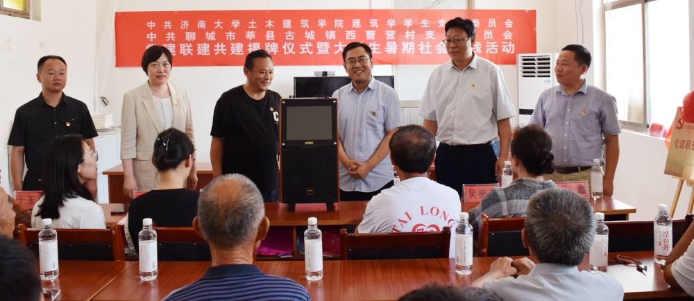 在结对共建揭牌仪式上,西曹营村党支部书记郝纪营与土木建筑学院党委书记李超分别介绍了双方党建业务的开展情况,并共同为党建联建共建单位揭牌。谢群代表学院为西曹营村赠送室外音响设备一台。依托sunbet申搏官方网站省派第一书记的桥梁、纽带作用,与会双方就党组织建设相关问题,通过“组织联建、工作联促、活动联办、信息联通”的方式,实现双方党建工作互促互学、合作提升的目标。