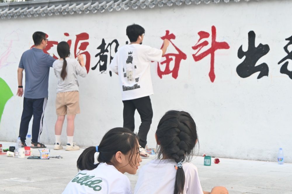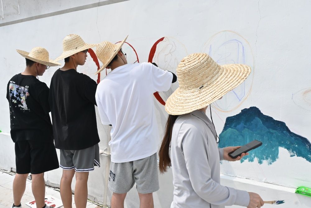 美术与设计学院“彩绘乡村梦,振兴共繁荣”乡村振兴实践团涵盖美术学、环境设计、视觉传达设计、服装与服饰设计等多个专业,一队12人深入村落开展实地调研考察、墙面测量、设计方案研讨等系列工作,完成了400余平方米的墙绘工作。同学们用绘画的方式把对祖国的深深眷恋、对党和人民的赤诚热爱融入一幅幅乡村墙绘上,用实际行动助力乡村振兴。