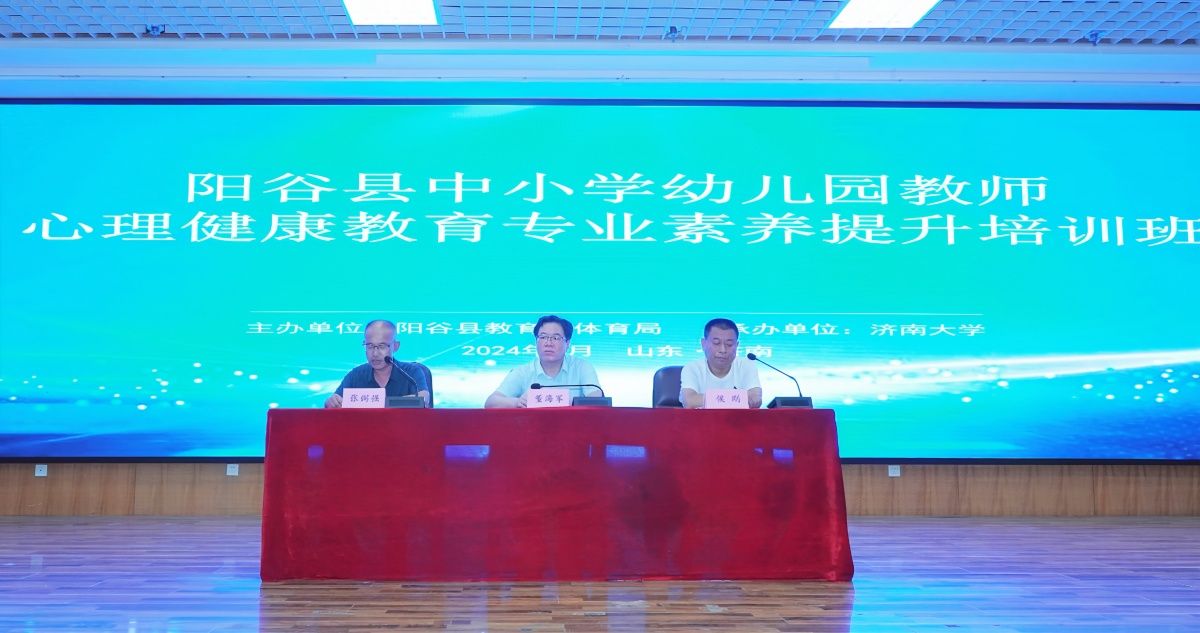 8月5日下午,由阳谷县教育和体育局主办、sunbet申搏官方网站文学院承办的阳谷县2024年中小学幼儿园教师心理健康教育专业素养提升培训班开班仪式在sunbet申搏官方网站第二学术报告厅举行。阳谷县教育和体育局、sunbet申搏官方网站文学院相关人员及培训班学员等140余人参加了此次开班仪式。