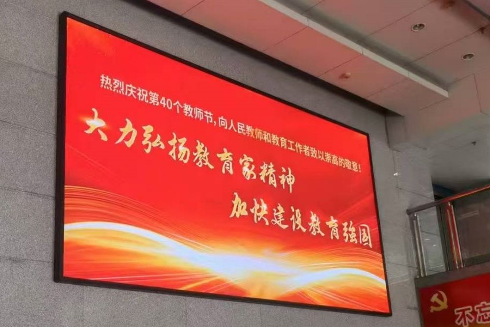 今年9月10日是我国第40个教师节,山东省教育厅组织开展了“为教师亮灯”公益活动,在全省各地的标志性建筑“为教师亮灯”。我校积极响应,在校园多处电子屏幕滚动播放字幕,为教师送上了诚挚的节日祝福,营造浓厚的节日氛围。
