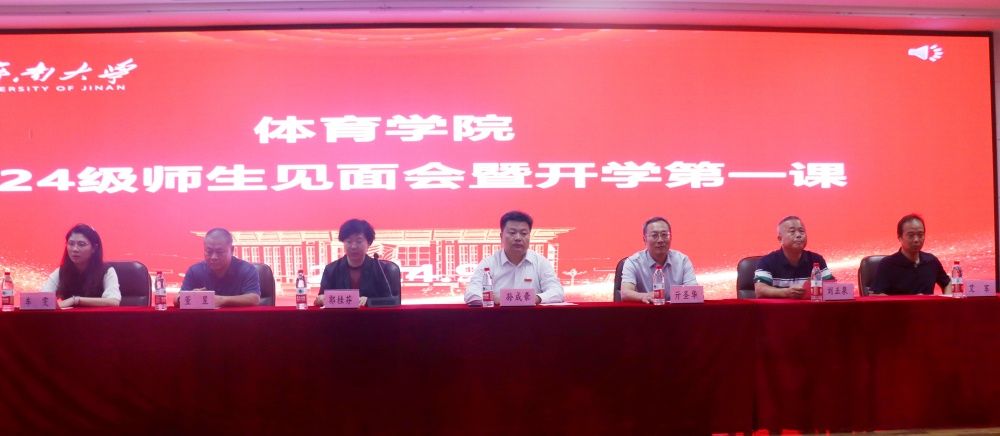 新生见面会结束后,体育学院院长亓圣华以“青年来大学干什么”为题,为新生们讲授了开学第一课,他从时代背景引入,讲述了新时代体育人的历史使命和社会责任,并重点介绍了学院的专业设置、培养目标、师资队伍、科研成果等情况,引导同学们明确未来的学习方向和职业前景。鼓励大家关注行业动态,为未来的职业发展做好准备。呼吁同学们珍惜大学时光,努力学习专业知识,积极锻炼身体素质,努力成为体育事业的栋梁之才。