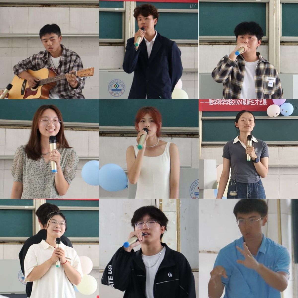 在热烈美好的氛围中,同学们纷纷展现自己的才艺,编织出一场视觉与听觉的盛宴。金数2402邰金学同学以一首《轨迹》开场,展现了人生的哲理和追求梦想的勇气;数学2401宋佳音和数学2403郭文硕以一首《后来》,带着大家在歌声中找寻那些青春的记忆;数学2401马金鲤的武术表演太极梅花螳螂拳彰显了中华传统文化的魅力……一场场精彩的演出诠释着同学们对大学生活的热爱与对未来的憧憬。