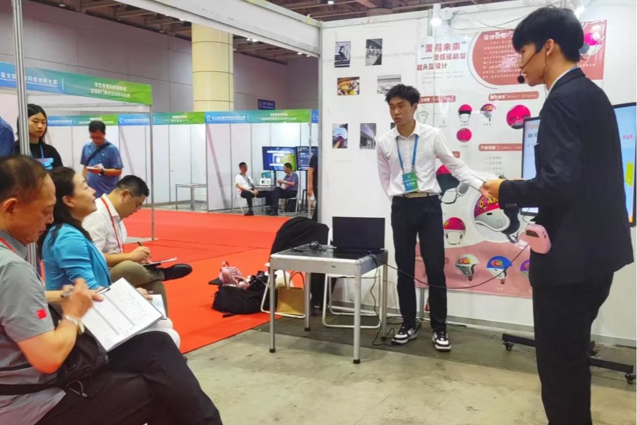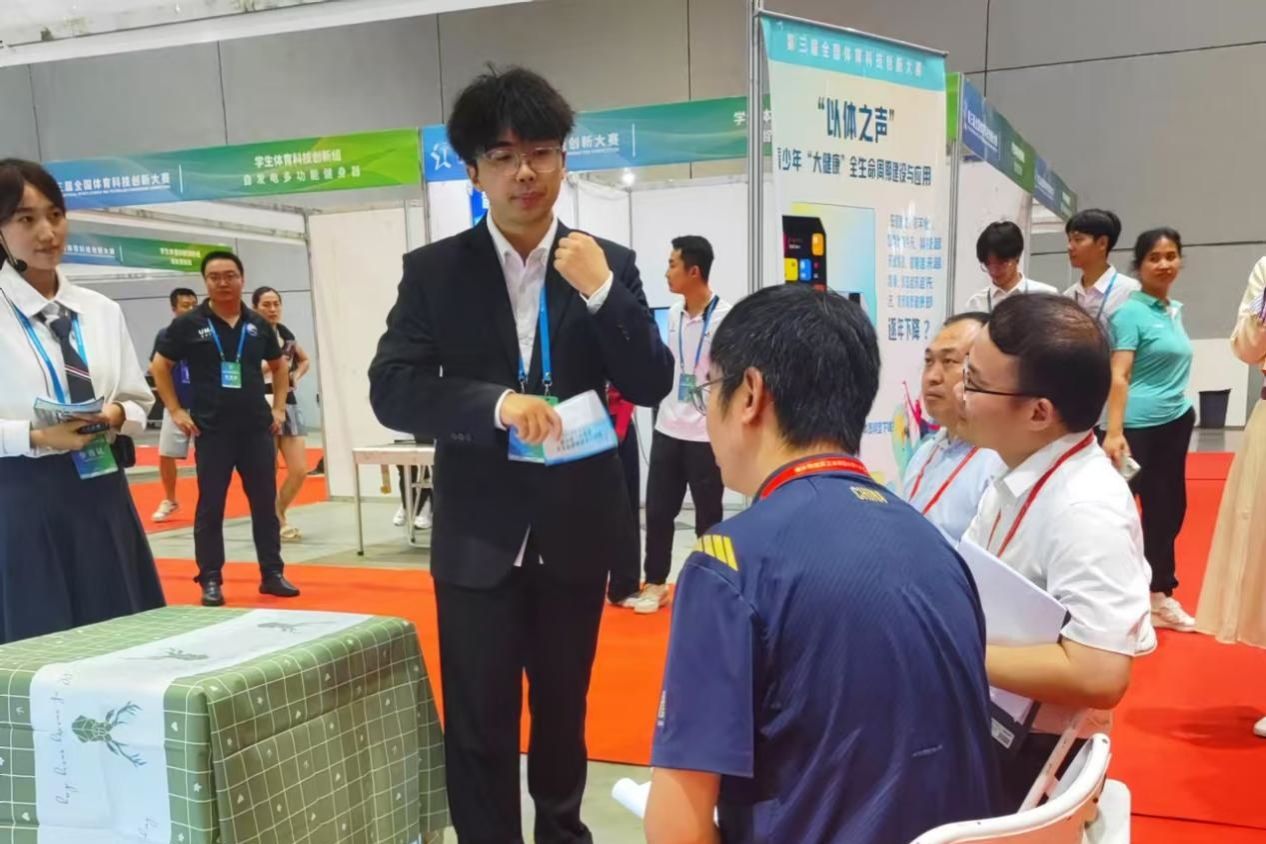 全国体育科技创新大赛是全国体育科技创新领域规格最高、规模最大的国家级品牌赛事,本次大赛以“科技创新助力体育强国建设”为主题,在促进体育科技的创新和发展、推动体育科技的普及、科技成果转化与推广方面发挥了积极的作用。本届大赛项目分体育创意设计组、体育软件平台组、体育产品展示组、学生体育科技创新组四个组别,其中体育创意设计组18项、体育软件平台组41项、体育产品展示组37项、学生体育科技创新组108项,共有204项作品进入决赛,曹同杰等学生参赛的《“以体之声”青少年“大健康”全生命周期服务与建设》获学生体育科技创新组全国金奖,孔凡志等学生参赛的作品《“滑翔未来”—skateboardinghelmet滑板爱好者的智能安全卫士》获学生体育科技创新组全国银奖。