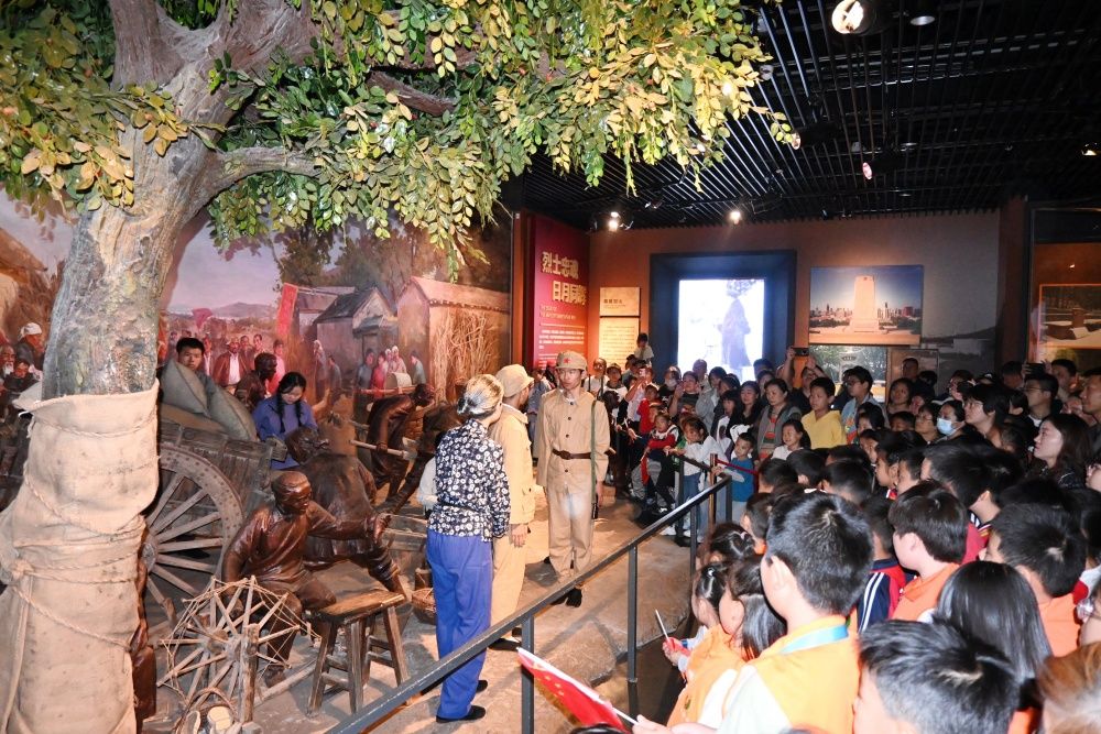 国庆节当天,文学院高芳荟、敖游、张森三位老师带领八位学生赴济南战役纪念馆进行演出。演出在馆中打造的实地场景“人民支前”农家小院进行,讲述了支前拥军模范李自兰带领村民支援前线、送儿子参军的故事,展现了山东解放区人民在党的领导下“男女老少齐动员,家家户户忙支前”的支前场景和革命精神。演员们穿上解放军军装、粗布短衣,拿起步枪、扛上麻袋,与背景融为一体,让红色故事“实地重现”,让爱国主义学习教育“活”起来。