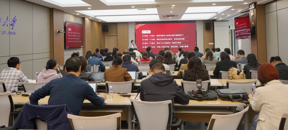 10月29日上午,机关党委在第五学术报告厅举办“强素质·作表率”机关干部创新讲坛第八期,邀请秋叶集团郑远霞老师以《AI赋能办公行政管理提效》为题,为机关各党支部负责党建工作的科级干部及部分教职工进行专题培训和实操演练。