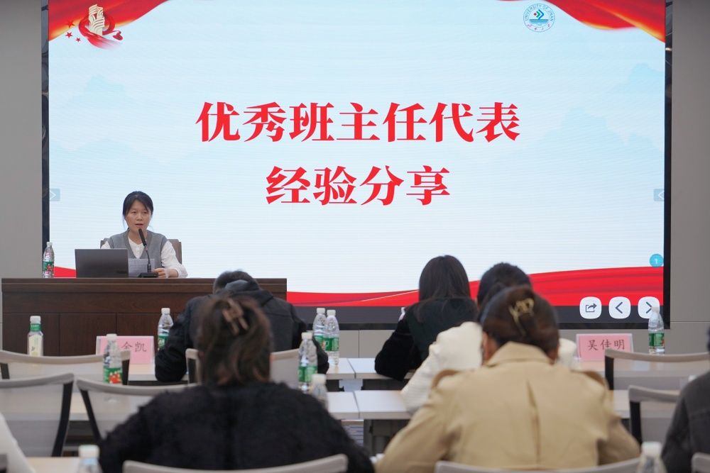 最后,李金凯和吴佳明作为优秀班主任代表进行经验分享。李金凯结合丰富的班主任经验向在座的老师们分享了他对于班主任工作的理解,分享了带领学生开展科创的心得体会。他表示,班主任工作常做常新,与学生的每次交流都能有所收获。吴佳明结合班级学风建设、学生关心关爱等角度做了细致分享。在场老师备受鼓舞,纷纷表示将通过不懈努力使班主任工作在学生心中更具魅力和光彩。