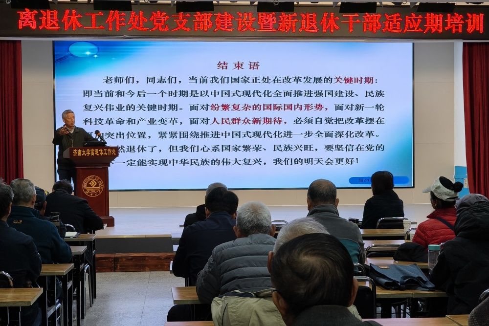 为深入学习宣传贯彻党的二十届三中全会精神,对标省委老干部局和学校党委组织部对党员干部进行培训的工作要求,11月5日-7日,离退休工作处党委举办党支部建设工作暨新退休干部适应期培训,各党支部书记、委员和新退休干部参加培训。