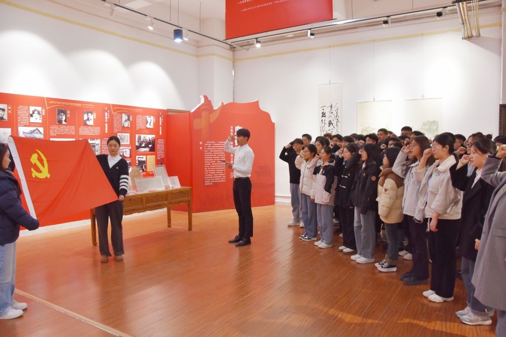 为进一步传承赓续红色血脉,凝聚红色奋进力量,强化对新发展党员的党性教育,提高思想觉悟和党性修养,11月22日,材料科学与工程学院党委组织新发展党员前往舜道艺术馆举行入党宣誓仪式暨党员红色教育活动。学院党委副书记、副院长张琦,各学生支部书记参加本次活动。