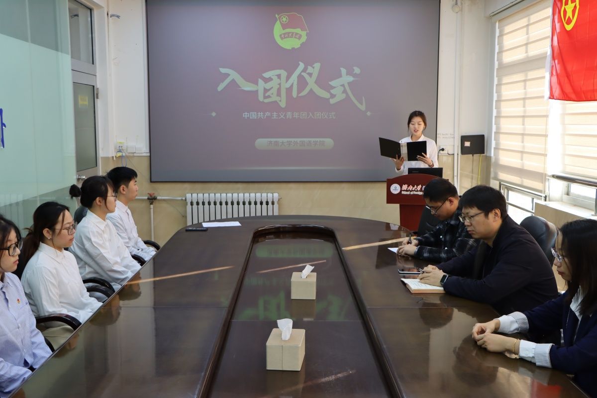 为追寻党的历史足迹,践行团的初心使命,发出为共产主义事业而奋斗的青春誓言,11月22日,外国语学院在第一教学楼608会议室举行2024年下半年新发展团员入团仪式,外国语学院副处级组织员李春海,学生办公室主任刘毅、团委书记吴杨洋、辅导员王艺笑、优秀团员代表和全体新发展团员参加仪式。会议由郭智昊主持。