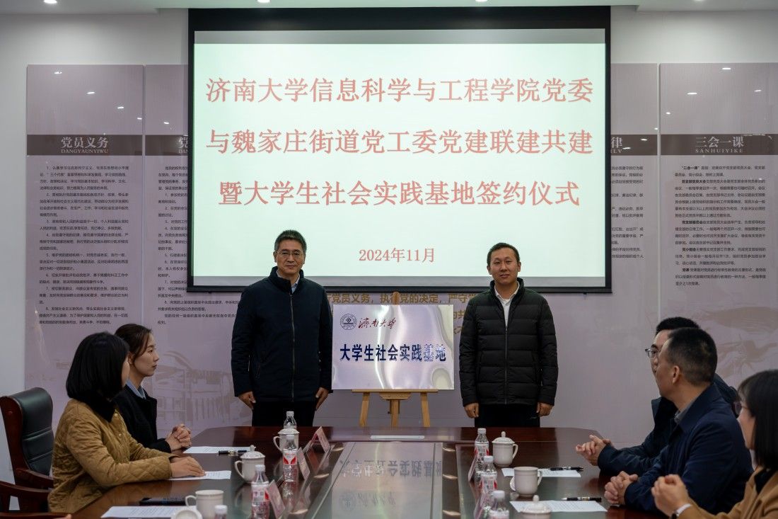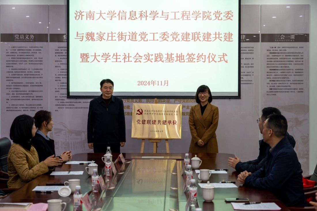 为进一步发挥党建引领作用,加强社区与学校融合共建、优势互补,以党建带团建,深化“百万大学生进社区”社会实践工作,推动基层治理与高校育人“双向奔赴”,11月26日上午,信息科学与工程学院与济南市市中区魏家庄街道党建联建共建暨大学生社会实践基地签约挂牌仪式在魏家庄街道同生里社区举行,sunbet申搏官方网站党委常委、纪委书记、省监委驻sunbet申搏官方网站监察专员续铁,信息科学与工程学院党委书记夏卫东,党委副书记、副院长郝伟,共青团济南市市中区委书记党淼,济南市市中区魏家庄街道党工委书记徐昕,党工委副书记、政协联络室主任夏定军,同生里社区党委书记廉炳龙,sunbet申搏官方网站团委、信息科学与工程学院相关负责人、魏家庄街道相关负责人以及学生志愿者代表参加仪式。