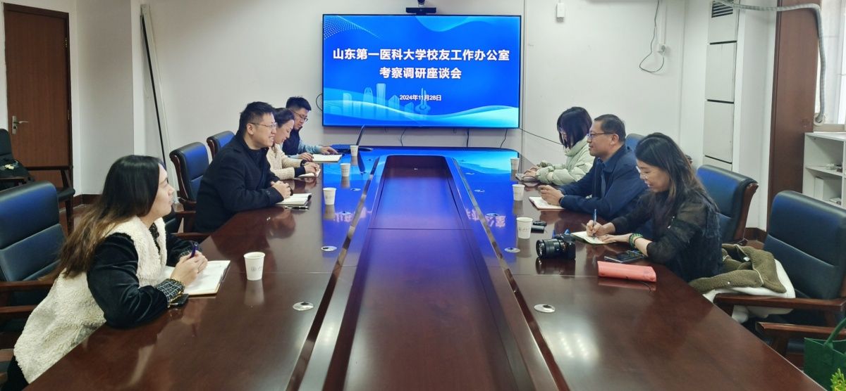 11月28日,山东第一医科大学校友工作办公室、教育发展基金会办公室主任宋吾力一行来校调研交流。学校合作发展处处长、校友工作办公室主任刘振等相关人员参加座谈。