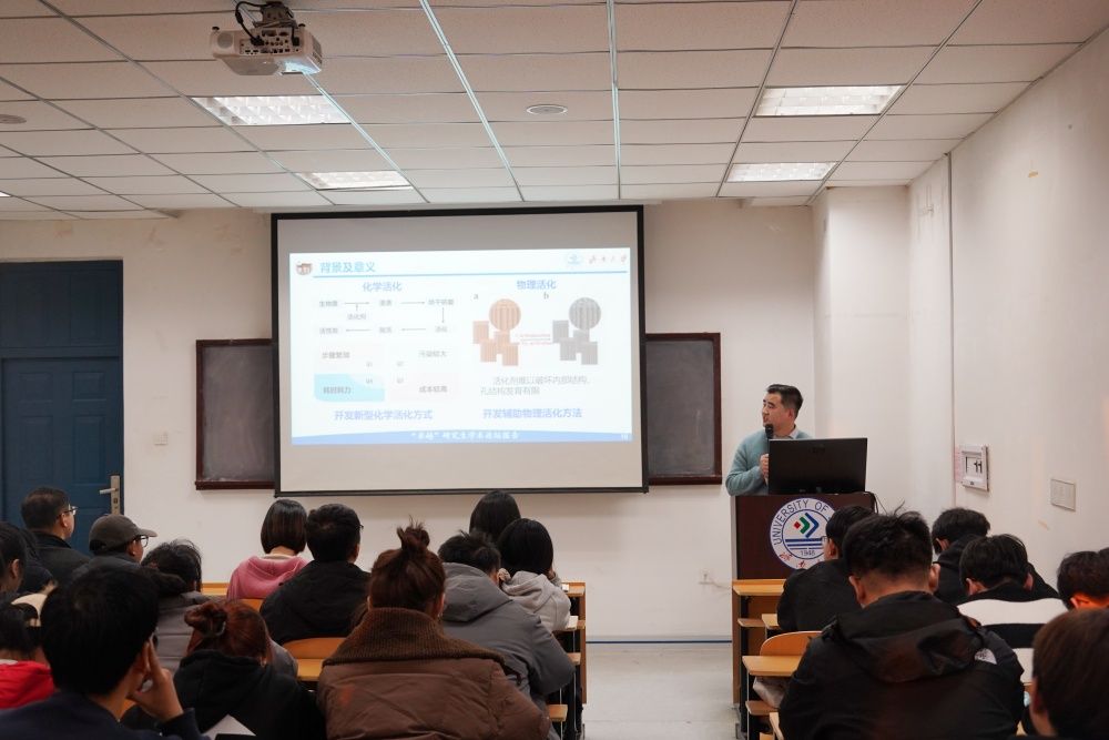 论坛伊始,研究生辅导员郭冉介绍了本次论坛的目的和意义,希望同学们能通过本次论坛增进学术交流,拓宽学术视野,加强学术联系。随后,李超以《生物质高值化利用的研究》为题分享了他的科研成果和学术心得。他提到,在科研过程中,找到适合自己的学习方式至关重要,强调每个人对学习的习惯和方式都有所不同,要敢于尝试,找到最适合自己的方法。紧接着,孙部庭以《去发光,而不是被照亮》为题从硕士研究生的视角向同学们分享了他的科研探索之路。孙部庭表示,在科研入门阶段,做好长期规划和设定短期目标非常重要。他建议同学们尽早根据毕业要求和未来发展目标制定战略,树立持续学习的信念和深度钻研的心态,向下扎根,向上发力。