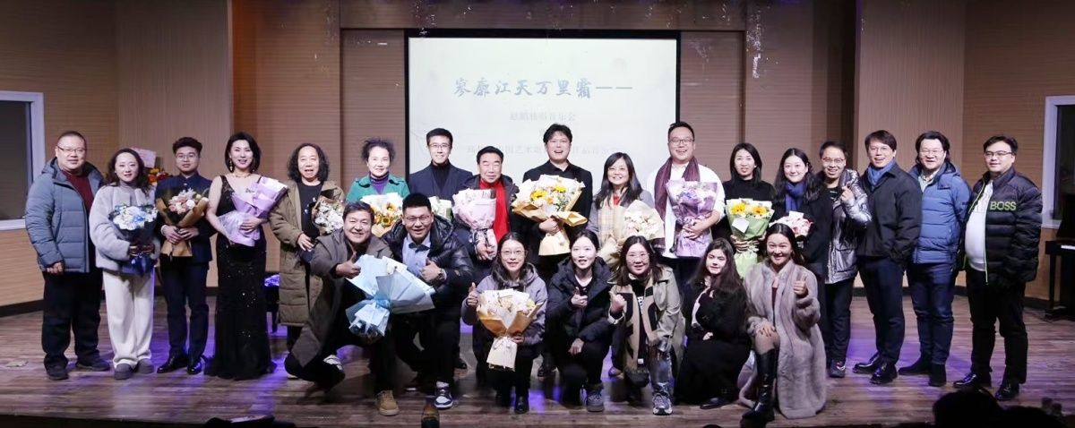 音乐会尾声,著名旅美低男中音歌唱家李鳌教授为现场观众带来一曲《幽兰》,其创作源自《周易·中孚卦》中二爻的卦辞:“鹤鸣在阴,其子和之;我有好爵,吾与尔靡之。”李鳌教授出神入化地演唱,将孔子对于“士”之风骨的追求表达得淋漓尽致。整场音乐会以独特的音乐语言讲述了充满感染力与艺术魅力的音乐故事,音韵和谐,旋律优美,使师生们深切感受到了中国原创声乐作品的勃勃生机与深厚内涵。此外,李鳌还对音乐会中的演唱部分进行了详尽的点评,对郑梦雨的原创作品及赵鹏等人的精湛表演给予了高度评价。最终,音乐会在李鳌、赵鹏、徐小亮与白晶袁共同演唱的《踏雪寻梅》中圆满落幕。