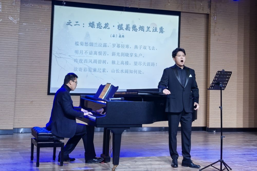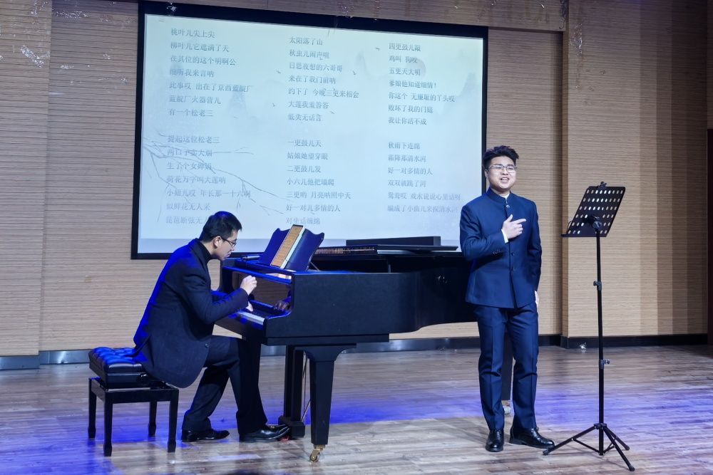 12月7日晚,音乐学院“冬之声”美育实践演出季精彩继续上演,“寥廓江天万里霜”——赵鹏独唱音乐会暨郑梦雨中国艺术歌曲原创作品音乐会在主校区2J101音乐厅举办。音乐会特别邀请到北京科技大学天津学院艺术学院音乐系声乐教师白晶袁、徐小亮,山东艺术学院音乐学院李鳌教授为助演嘉宾,校内外的师生和声乐与艺术歌曲爱好者百余人来到现场。
