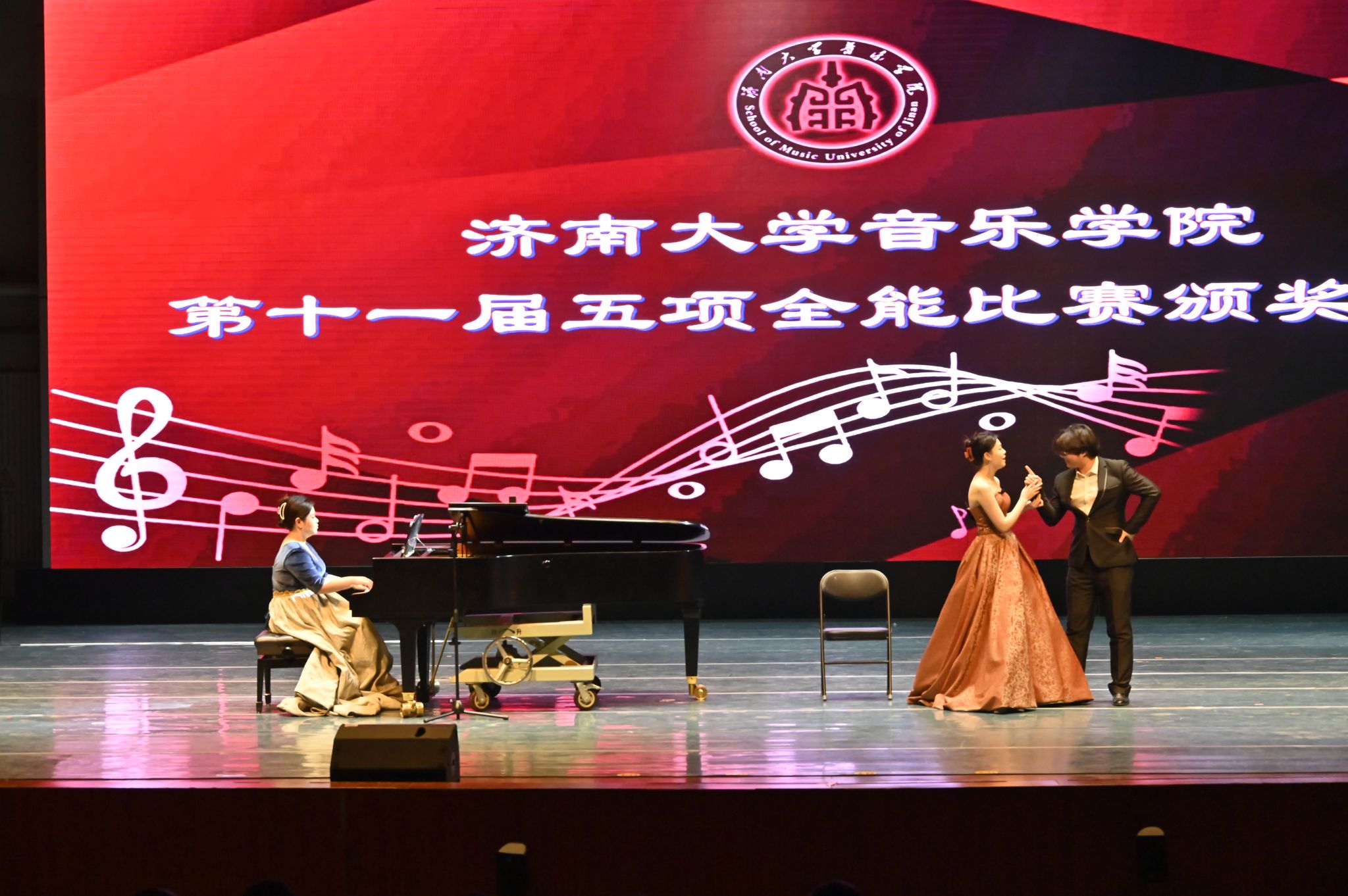 晚会伊始,学校党委常委、统战部部长徐庆国,音乐学院班子成员以及系主任,分别为荣获全能组、单项组一、二、三等奖的同学们进行颁奖并合影留念。