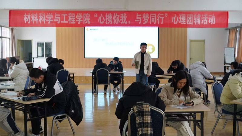 为进一步切实做好新时代学生心理健康工作,激活学生学习内驱力,提升学生整体凝聚力,12月13日,材料科学与工程学院举办了“心携你我,与梦同行”心理团辅活动。本次活动由学校心理指导中心的李传晓老师主持,面向新材2401班全体学生,通过一系列精心设计的环节,帮助学生更好地认识自我、理解他人,增强团队协作与信任感。
