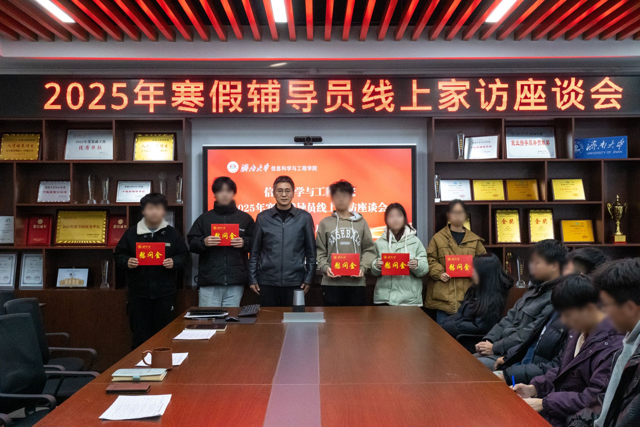 座谈会最后,学院领导老师为学生代表送上了寒假返乡路费补助,并表达了对他们未来的祝福与期盼。