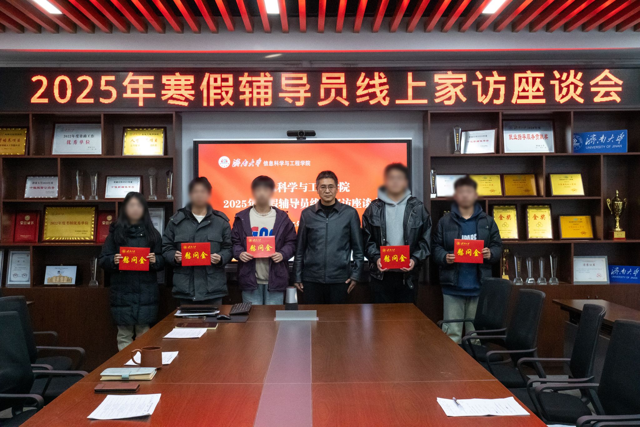 为围绕立德树人根本任务,进一步落实精准资助政策,扎实做好寒假家访工作,充分发挥各方优势、密切配合、相互支持,形成家校合力,共同关心学生生活、关注学生成长,1月7日下午,信息科学与工程学院在12教704召开了2025年寒假家访座谈会,通过腾讯会议、视频电话等方式与多名省外重点资助学生及家长进行线上交流,为受助学生家庭送去温暖和祝福。学院党政领导班子成员、全体学工人员、班主任代表以及部分学生及家长代表参与此次会议,会议由学院党委副书记、副院长郝伟主持。