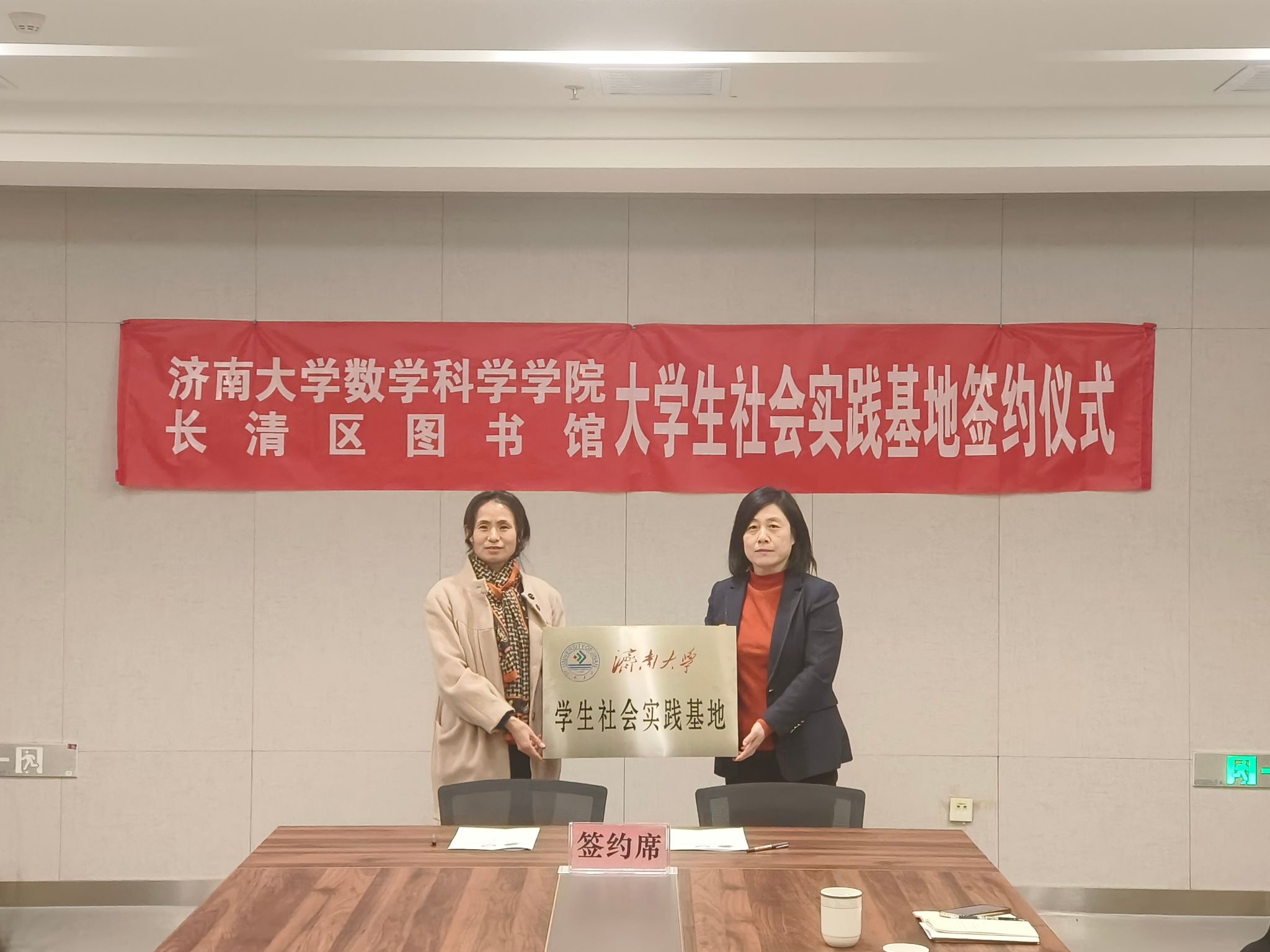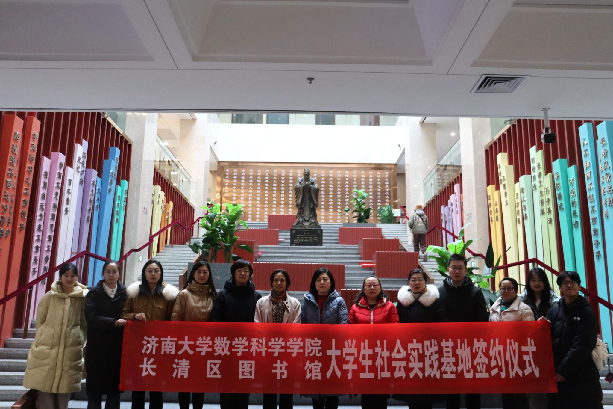 1月11日下午,数学科学学院与长清区图书馆共建大学生社会实践基地签约挂牌仪式在长清区图书馆举行。长清区图书馆馆长杨洪霞、数学科学学院党委书记崔英静、双方相关工作人员及学生代表参加活动。