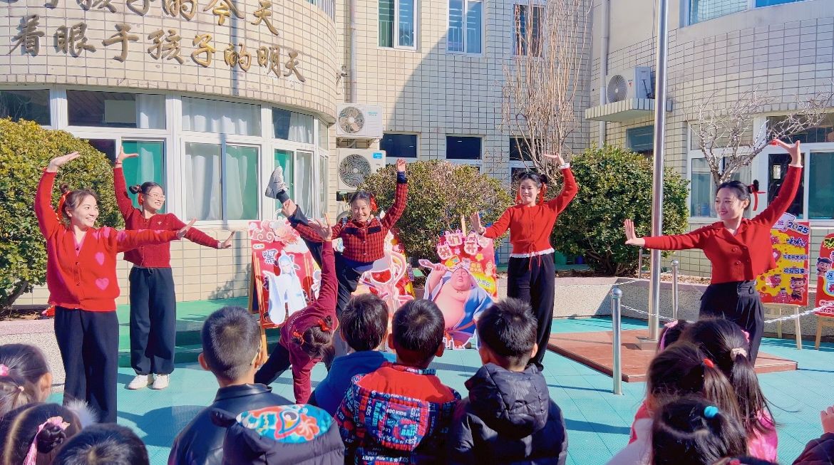 活动中,老师们带来了充满活力的哪吒手势舞,瞬间将现场气氛推向高潮。小朋友们跟随老师的节奏,挥舞着小手,稚嫩的脸上洋溢着认真与兴奋,现场掌声与欢笑声此起彼伏,整个校园沉浸在欢乐的海洋中。