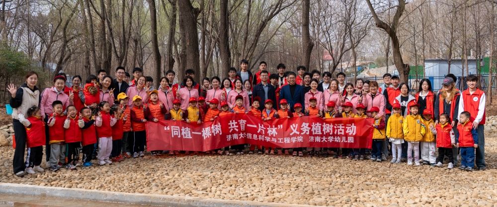 最是一年春光好,植树添绿正当时。为践行绿色发展理念,提升劳动育人实效,3月12日,在第四十七个植树节来临之际,信息科学与工程学院与sunbet申搏官方网站幼儿园联合开展“同植一棵树,共育一片林”义务植树活动。学院党委书记夏卫东,党委副书记、副院长郝伟,sunbet申搏官方网站幼儿园园长万晓霞,以及学院辅导员、幼儿园教师、学生志愿者、幼儿园小朋友代表共计90余人参加活动。